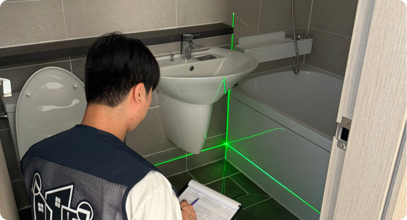 레이저 측정기를 통해 벽체, 천장, 바닥 등의 구조적 안정성을 점검합니다. 균열이나 변형이 발생할 가능성이 있는 부분을 미리 발견해 안전성을 확보합니다.